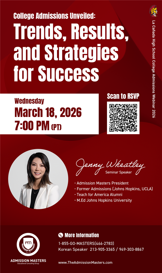 [3/18/26] La Cañada High School College Admissions Webinar 2026 - RSVP NOW!